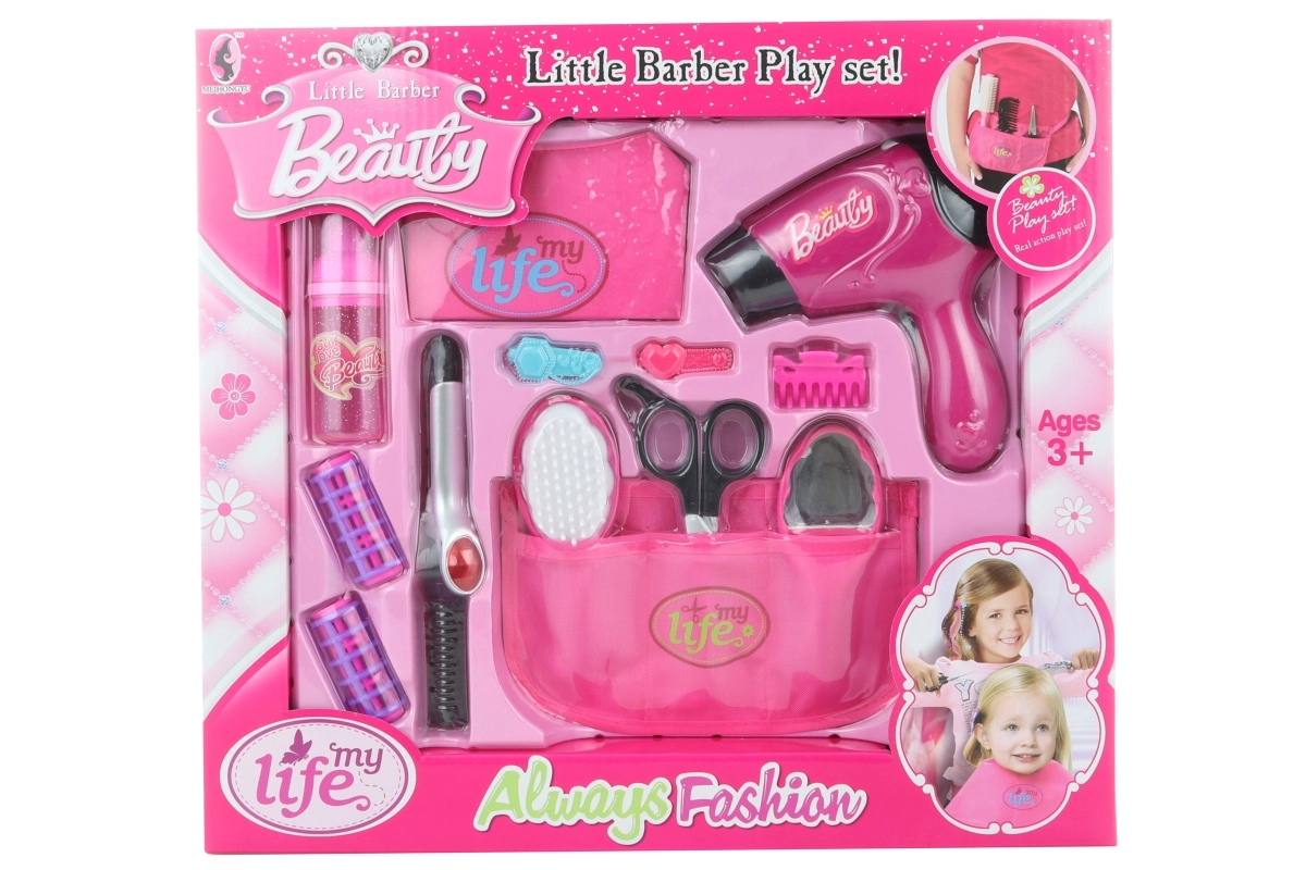 Začnite ustvarjati kreativne pričeske s tem zabavnim setom za male frizerke! V njem najdete baterijski sušilnik za lase, likalnik za lase, škarje, glavnik, navijalke, žepnik in številne druge dodatke, ki spodbujajo domišljijo in razvoj fine motorike. Idealna igrača za otroke od 3 let naprej.