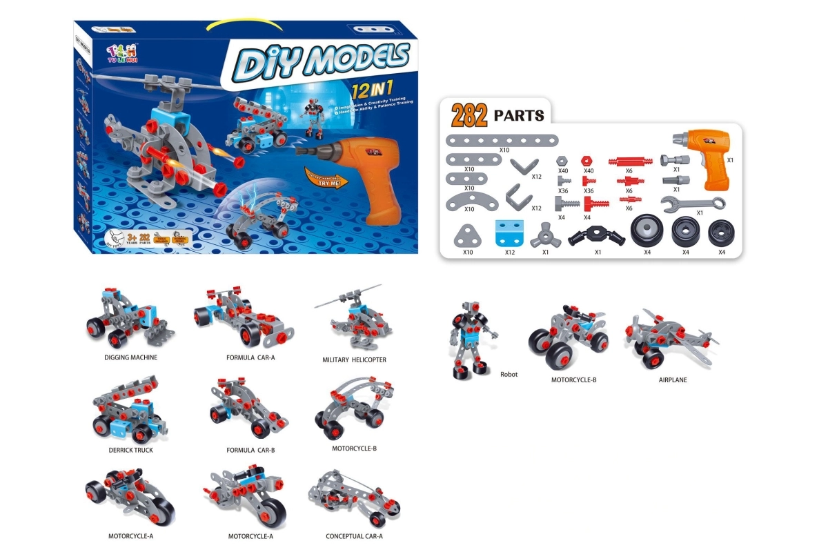 Ta kreativna vijačna sestavljanka je odlična izbira za male mojstre. Otroci si s pomočjo otroškega vrtalnika in izvijača zlahka sestavijo različne oblike in predmete, s čimer razvijajo fino motoriko, logično razmišljanje in kreativnost. Zahvaljujoč bogatemu kompletu 282 kosov je zabave za dolge ure.