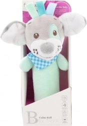 Ta mehka plišasta ropotuljica z zelenim kužkom je idealna prva igrača za novorojenčke. Zahvaljujoč piskanju in rožečemu zvoku spodbuja sluh, medtem ko izrazite barve in kontrasti podpirajo vidno zaznavanje. Ergonomična oblika olajša držanje z malimi rokicami.