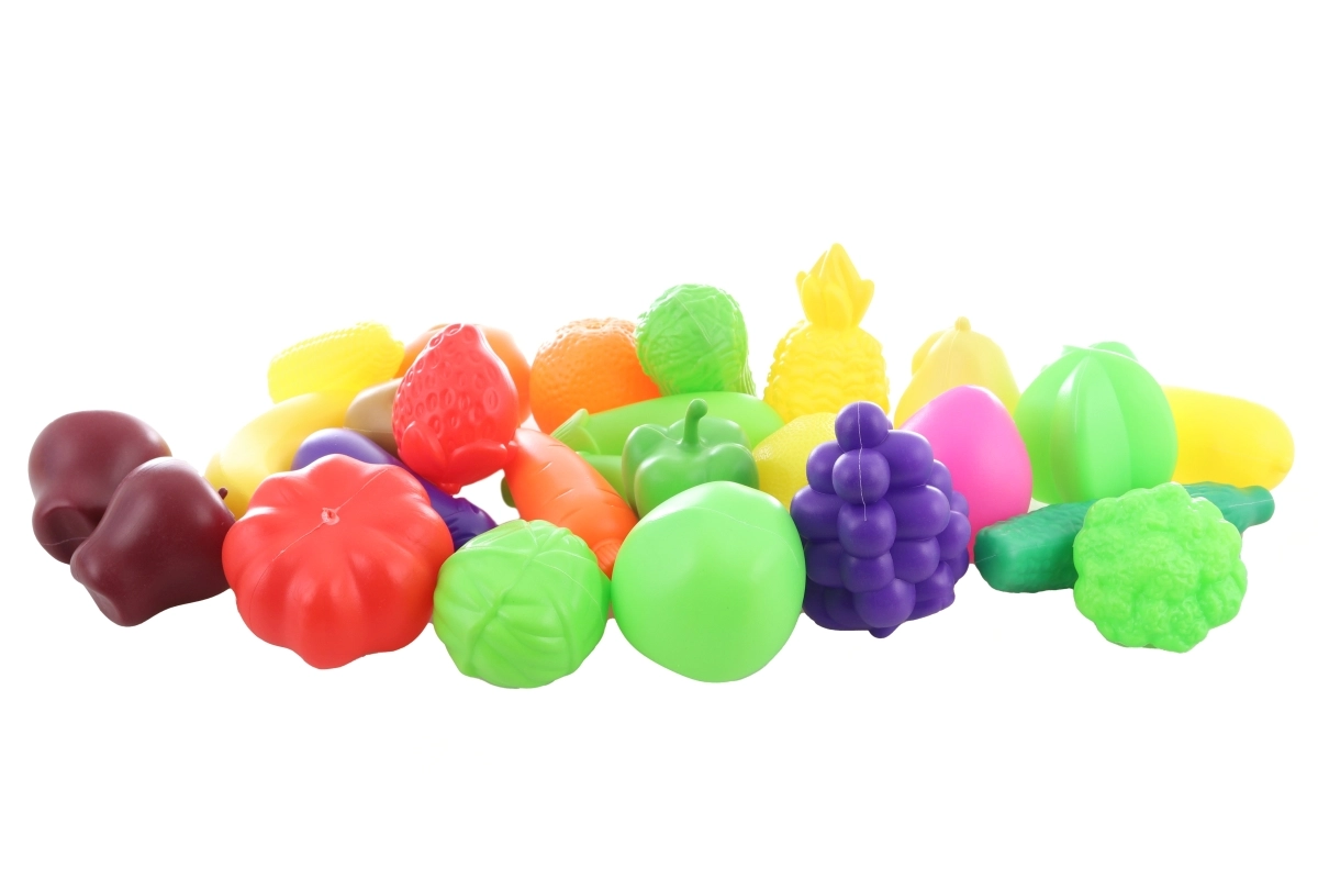 Lahka in trpežna plastika prenese vsakodnevno igro. Otroci zlahka prepoznajo osnovne vrste živil in barve.