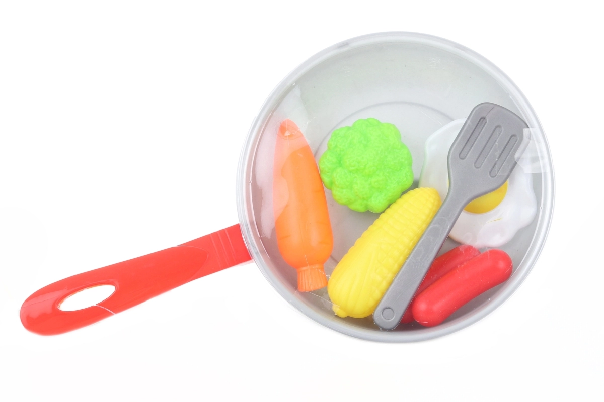 Ta igriv komplet za otroško kuhinjo vsebuje vse potrebno za prve »kuharske« korake – plastično ponev, praktično lopatko in 5 kosov živil. Zaradi kompaktnih mer se dobro prilega tudi manjšim otroškim rokam in ponuja veliko zabave pri posnemanju kuhanja.