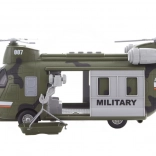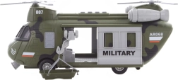 Realistični vojaški helikopter v merilu 1:16 bo razveselil vsakega malega pilota. Ob pritisku na gumb se prižge in predvaja avtentične zvoke. Napajanje zagotavljajo 3× AG13/LR44 baterije, ki so priložene v paketu. Idealno darilo za otroke od 3 let.