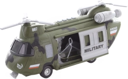 Ta podrobno izdelan vojaški helikopter na baterije otrokom prinaša veliko zabave in možnosti za ustvarjalno igro. Ob pritisku na gumb se aktivirajo svetlobni efekti in zvoki, ki podprejo vzdušje akcijskih misij.