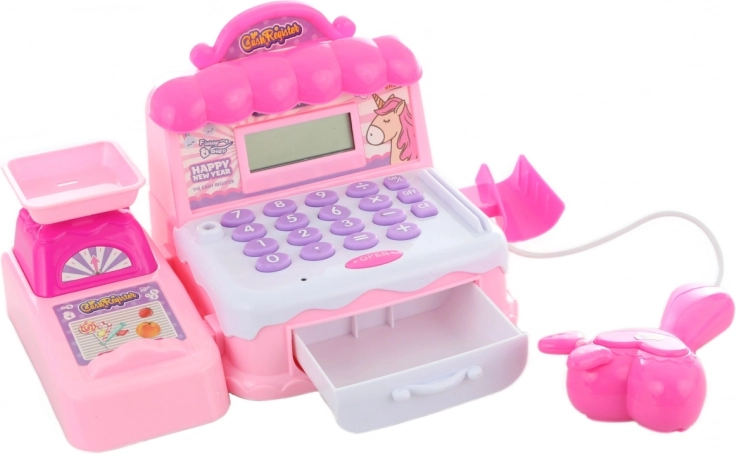 Otroška blagajna z samorogom – rožnata elektronska blagajna na baterije