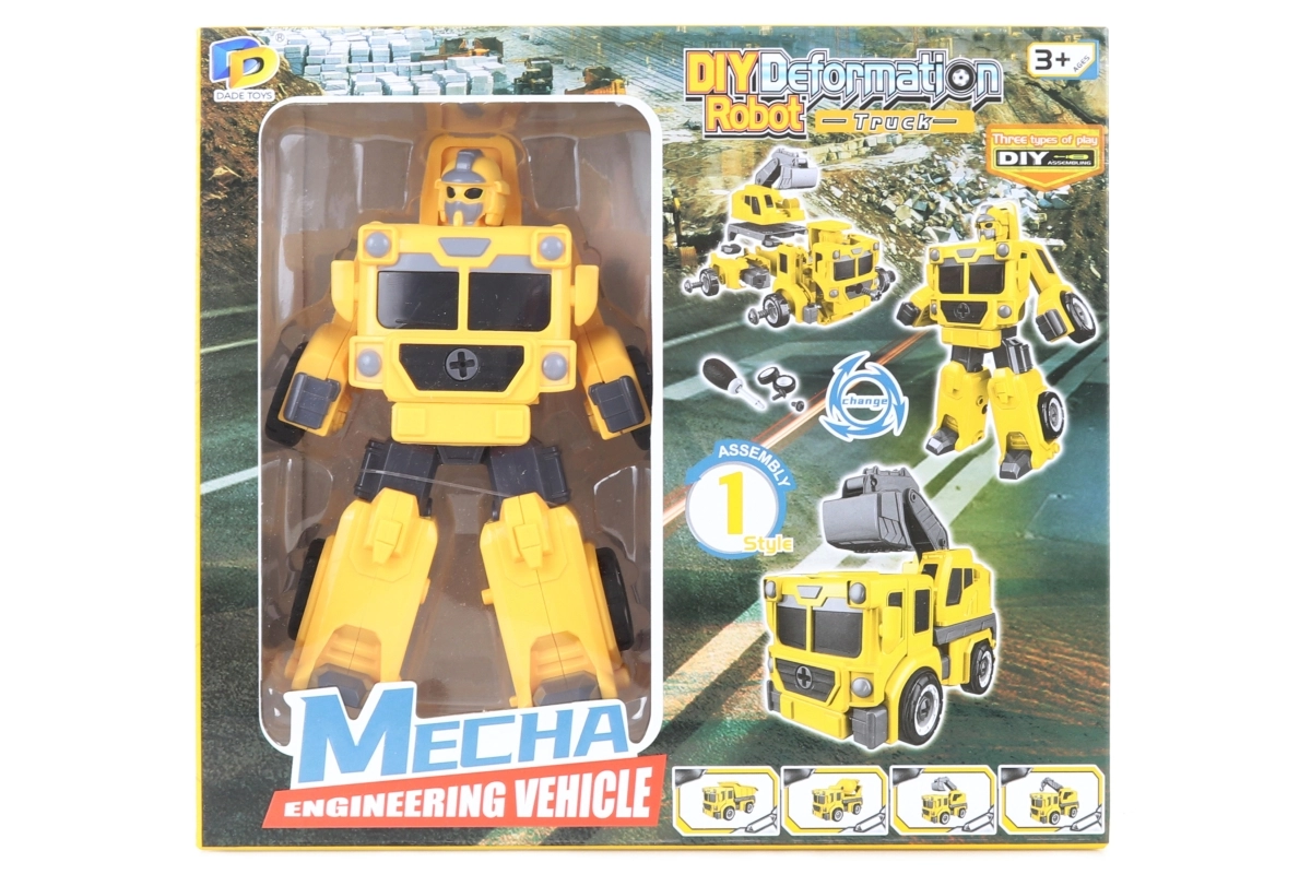 Odkrijte igriv set za sestavljanje, ki otroke zabava in hkrati spodbuja njihov razvoj. Rumeni zložljivi robot se zahvaljujoč vijačnim delom spremeni v tovornjak z bagrom, zato si mali graditelji lahko privoščijo kar dva modela v enem. V paketu najdete vse, kar potrebujete za montažo, vključno z otroškim izvijačem in dodatki.