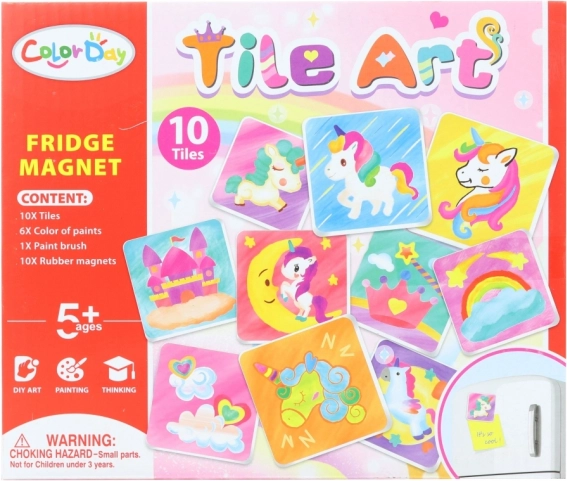 Odkrijte zabaven komplet za otroke za izdelavo magnetov za hladilnik. Paket vsebuje 10 porcelanastih ploščic, 10 magnetov, 6 barvic in čopič – vse, kar otroci od 5. leta dalje potrebujejo za ustvarjanje lastnih izvirnih dekoracij.