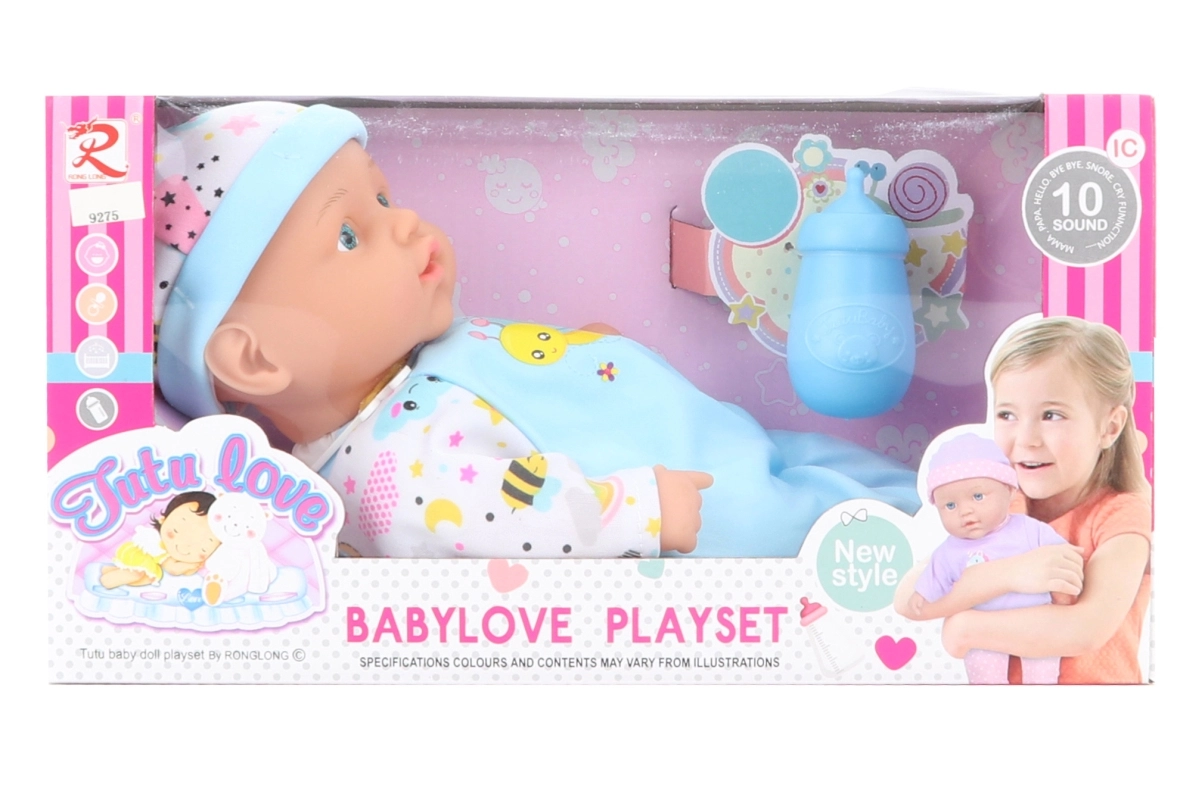 Ta realistični dojenček velikosti 30 cm je odličen za razvoj domišljije in skrbstvenih veščin. Zaradi mehkega tekstilnega telesa je prijeten za držanje in enostaven za uporabo tudi za mlajše otroke. Po vstavitvi baterij dojenček oddaja 10 različnih zvokov, ki igri dodajo pristnost.