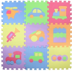 Ta komplet barvnih penastih sestavljank otrokom ponuja ne le udobno in varno podlogo, temveč tudi zabavno obliko učenja. Izrezljive oblike (prevozna sredstva in drugi predmeti) spodbujajo fino motoriko, prepoznavanje oblik in barv ter razvoj domišljije pri sestavljanju.