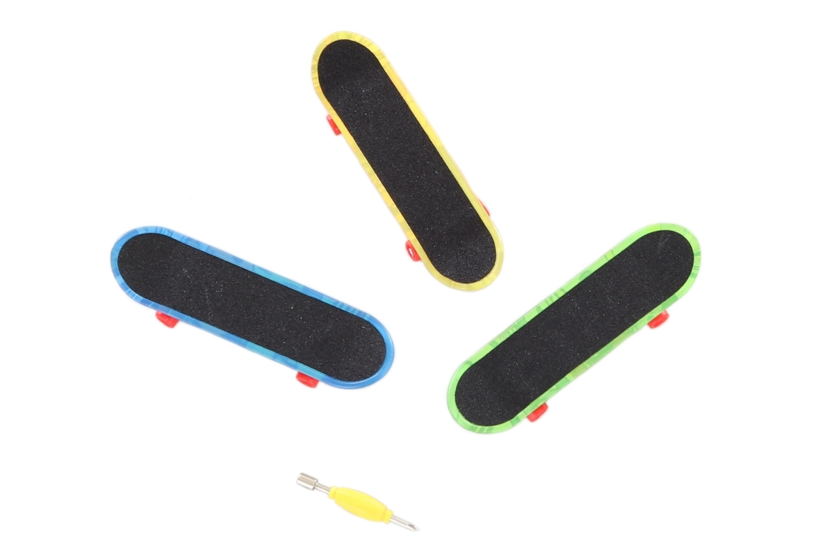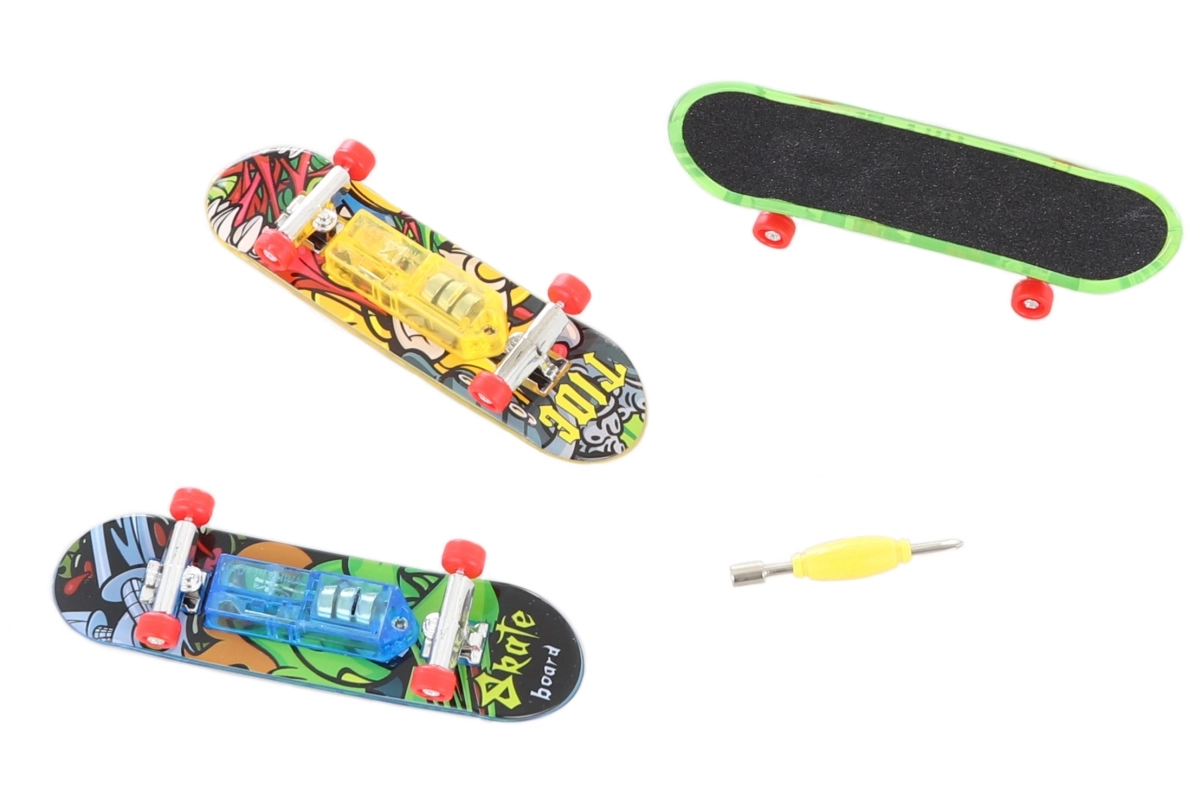 V paketu najdete 3 mini skejte in orodje za privijanje. Baterije AG13 so priložene, zato lahko začnete takoj.