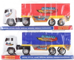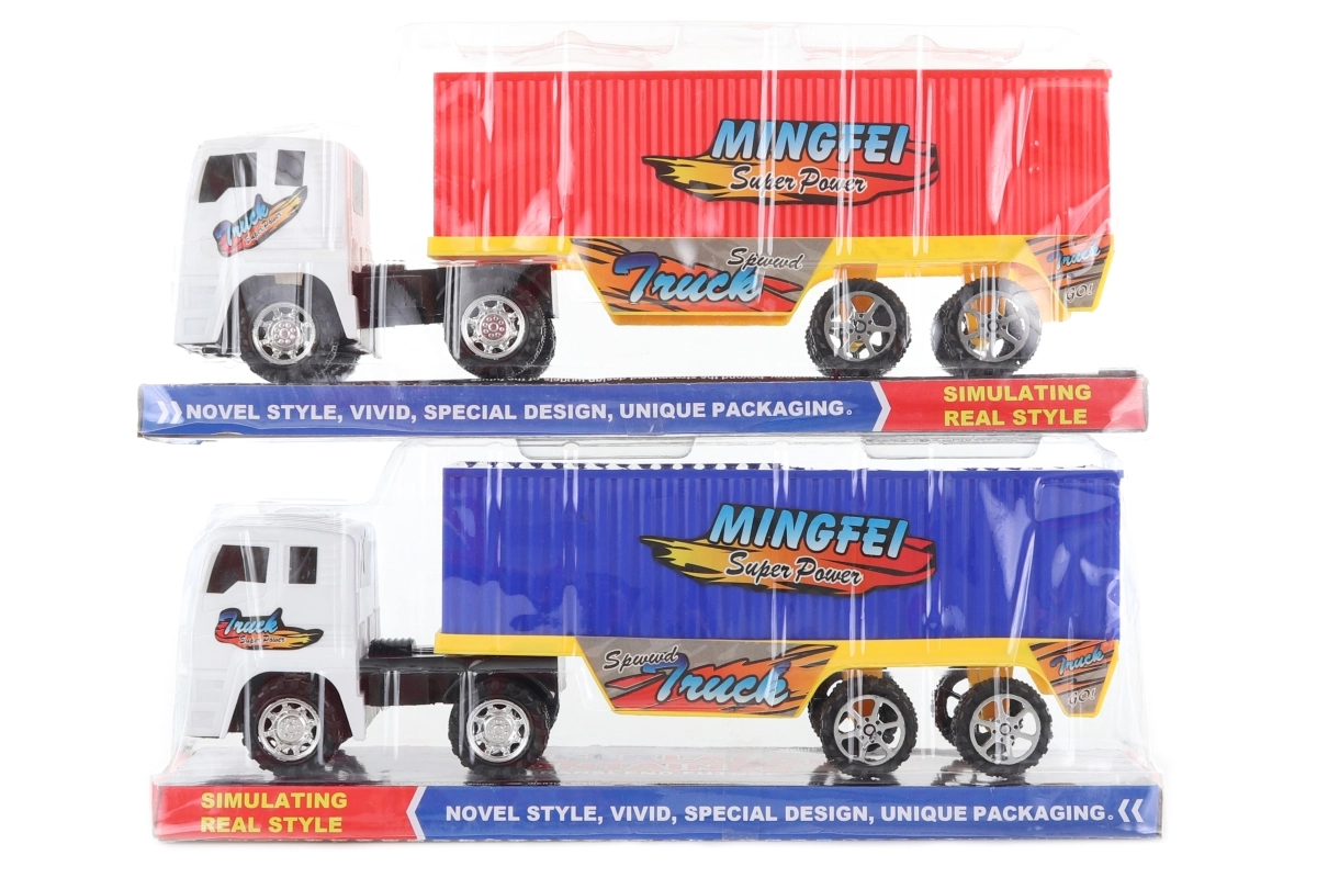 Plastični tovornjak s prikolico na vztrajnik je odlična izbira za male voznike in ljubitelje tovornih vozil. Zahvaljujoč vztrajniku se vozilo po potisku gladko zažene in dolgo vozi, kar poveča zabavo pri igri. Odpirajoča se zadnja vrata omogočajo realistično nakladanje in razkladanje “tovora” ter spodbujajo ustvarjalno igro.