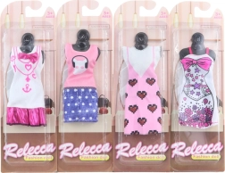 Obleka je zasnovana za punčke in meri približno 12,5 x 5,5 cm, odvisno od tipa. Pakirana je v plastično embalažo, barvna različica pa je določena glede na trenutno zalogo. Vsak kos je del ekskluzivne kolekcije Rebecca, ki ponuja raznoliko izbiro in eleganten dizajn.