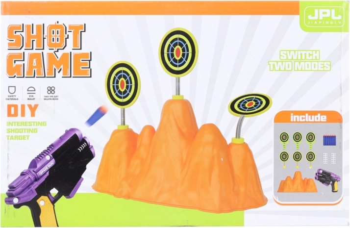 Uživajte v akcijski zabavi z varno napeto pištolo in stabilnim stojalom s tarčami. Barvit dizajn, enostavno upravljanje in mehke penaste puščice omogočajo varno igro tudi v notranjih prostorih. Set spodbuja natančnost, osredotočenost in igrivo tekmovalnost.