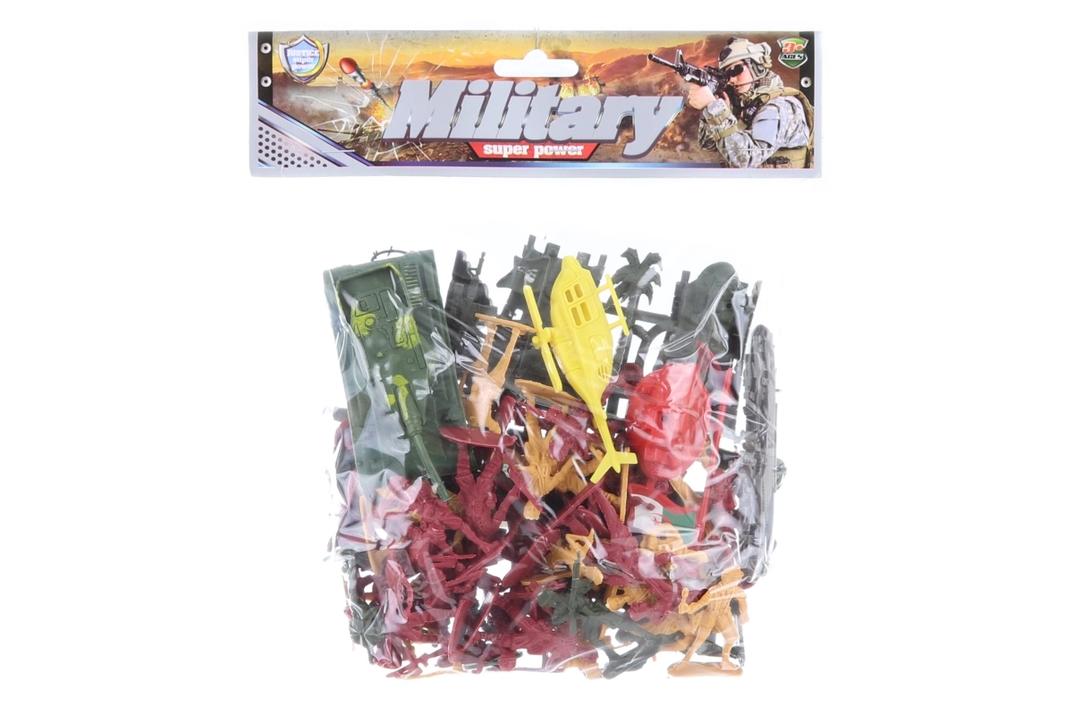V kompletu niso le figurice, temveč tudi tank, helikopter in elementi utrdb, s katerimi si otroci zlahka ustvarijo lastno bojno okolje. Pakiranje v praktični vrečki je idealno za na pot in za enostavno shranjevanje.