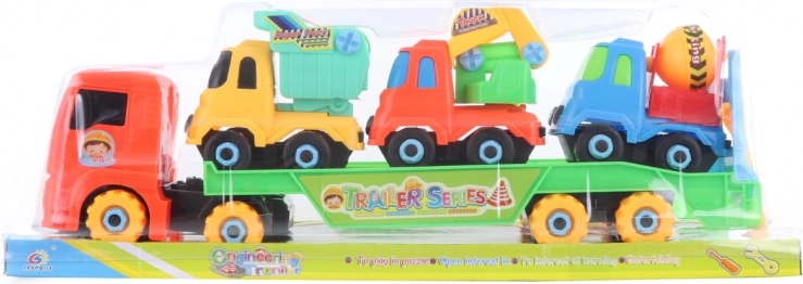 Odkrijte svet gradnje s tem odličnim kompletom – robusten vijačni tovornjak in trije gradbeni stroji prinašajo ure zabave. Otroci bodo uživali v vijačenju in sestavljanju, razvijali spretnost in potrpežljivost, medtem ko se igrajo male inženirje.