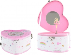 Ta čarobna glasbena škatlica za nakit v obliki srca je idealen prostor za shranjevanje prstanov, uhanov in drobnih zakladov. Po navijanju ključka v notranjosti zazveni melodija, majhna balerina pa se začne elegantno vrteti pred ogledalcem. Dizajn v rožnatih odtenkih z nežnimi motivi bo očaral tako otroke kot odrasle.