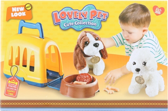 Prisrčen set za male ljubitelje živali: plišasti kužek s plastičnim transportnim boksom, posodico in hranom. Odličen za igro veterinarja in na poti. Za otroke od 3 let.