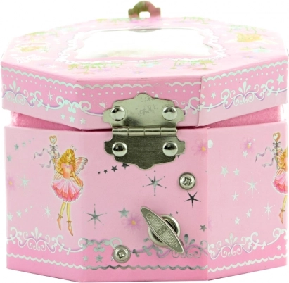 Ta ljubka glasbena škatlica za nakit v rožnati barvi s pravljičnimi motivi je popoln prostor za shranjevanje prstanov, uhanov in drugih drobnarij. Po zavrtanju ključka se balerina graciozno vrti pred ogledalcem, škatlica pa predvaja nežno melodijo.
