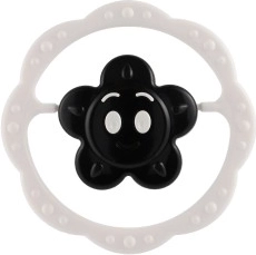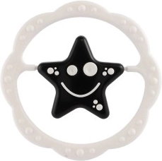 Teksturirani robovi delujejo kot nežno grizalo za pomiritev razdraženih dlesni. Kontrastni motiv zvezde/cvetlice na sredini pritegne tudi zelo majhne otroke, ki šele urijo izostritev pogleda. Igrača je izdelana iz kakovostne plastike in je primerna za vsakodnevno uporabo doma in na poti.
