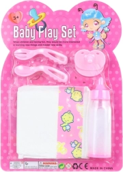 Vsebina paketa vključuje vse za celovito skrb: stekleničko za pitje za napajanje punčke, pleničko za previjanje, dudo za pomiritev in pribor za hranjenje. Zaradi kompaktnih mer je komplet primeren tudi za na pot in ga je enostavno pospraviti.