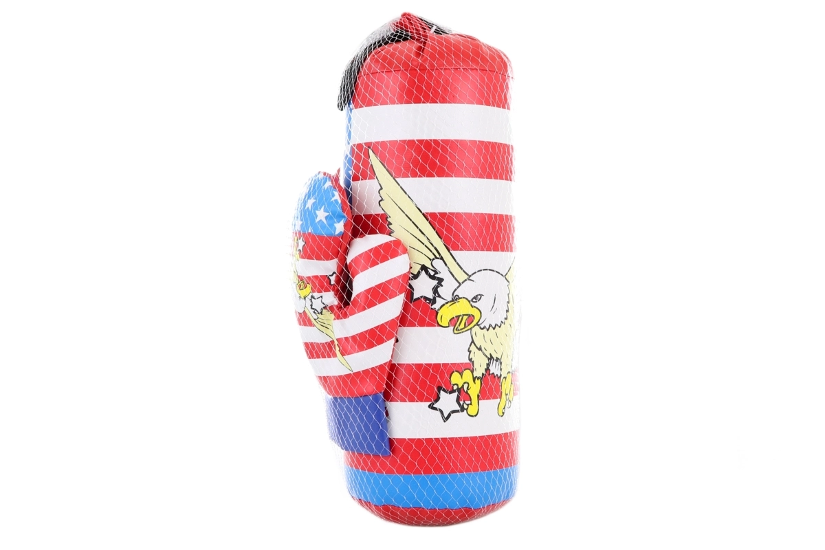 V kompletu sta boksarska vreča in otroške rokavice, vse pregledno zapakirano v praktični mrežasti vrečki za enostavno prenašanje in shranjevanje. Odlično darilo za aktivne otroke od 3 let dalje.
