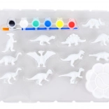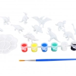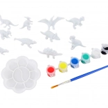 Komplet vsebuje 3D dinozavre, 6 barv, čopič in paleto – otroci lahko začnejo ustvarjati takoj, brez dodatnega nakupovanja pripomočkov.