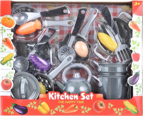 Ta bogato opremljen komplet otroške posode bo razveselil vsakega malega kuharja ali kuharico. Zahvaljujoč pestri izbiri posode in živil lahko otroci posnemajo kuhanje kot odrasli ter varno razvijajo svoje veščine. Komplet je primeren za vsakodnevno igro doma ali v vrtcu.