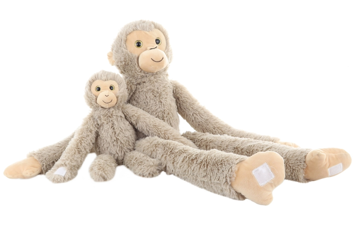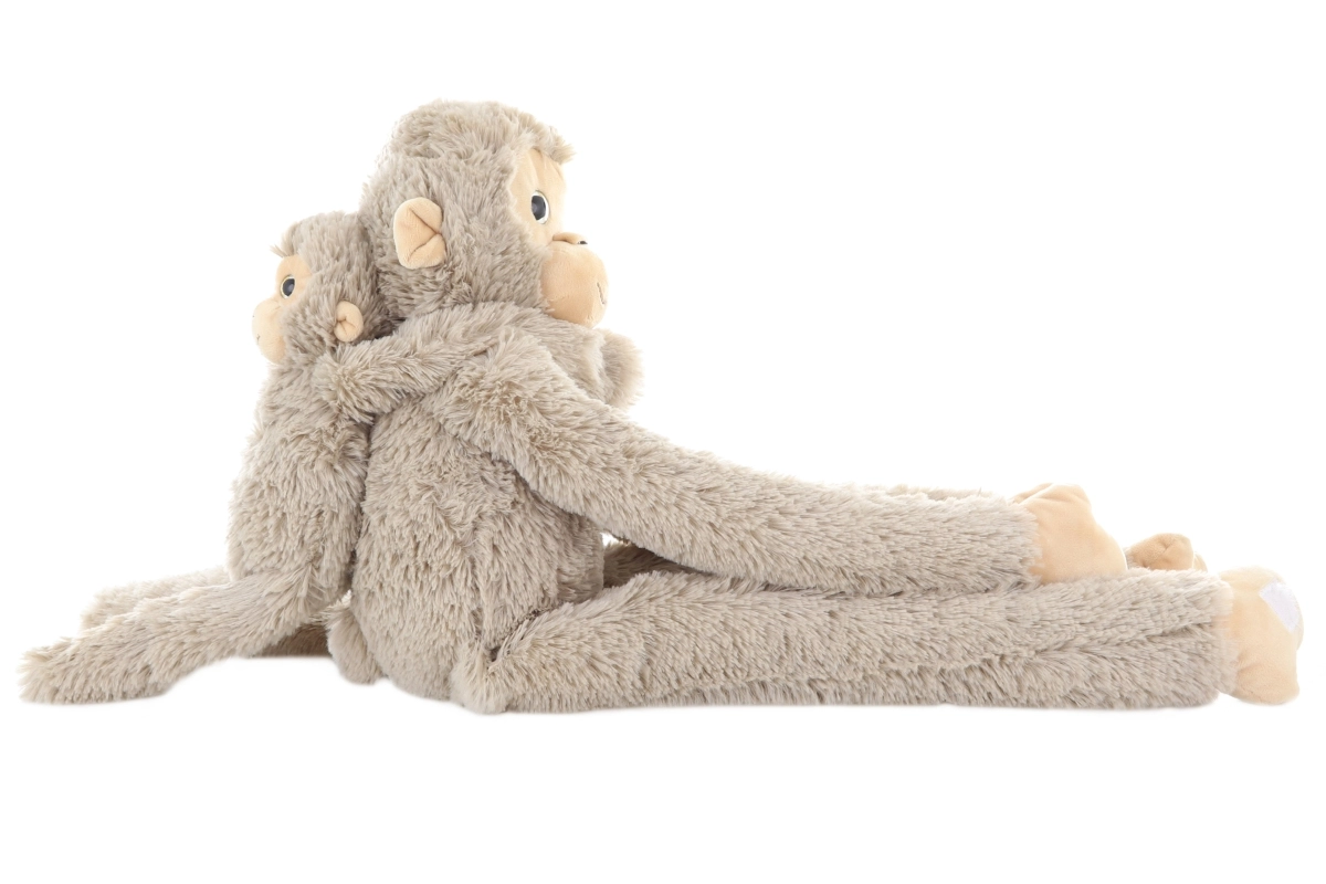 Ljubka plišasta opica z odstranljivim mladičem je idealen ljubček za otroke že od rojstva. Zahvaljujoč izredno dolgim okončinam in ježku na rokah se zlahka objame okoli otroka, posteljice ali vozička. Mehka in žametna izvedba zagotavlja udobje pri crkljanju in uspavanju, odstranljiv mladič pa spodbuja domišljijo pri skupni igri.