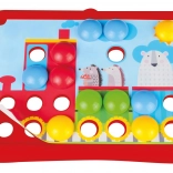 Robustna plastična izvedba zagotavlja vzdržljivost in dolgo življenjsko dobo. Otroci lahko zatiče večkrat vstavljajo in ustvarjajo lastne vzorce, s čimer urijo koordinacijo oko–roka in zbranost. Praktična embalaža je primerna doma in na poti.