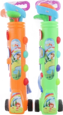 Zabaven otroški golf set z vozičkom bo malim igralcem prinesel veliko gibanja in veselja. Vsebuje 3 golf palice, 4 žogice, 2 plastični luknji in dodatke, vse pregledno shranjeno v vozičku na kolesih. Odlično za razvoj motorike, koordinacije in igrivega učenja, idealno za otroke od 3 let naprej.