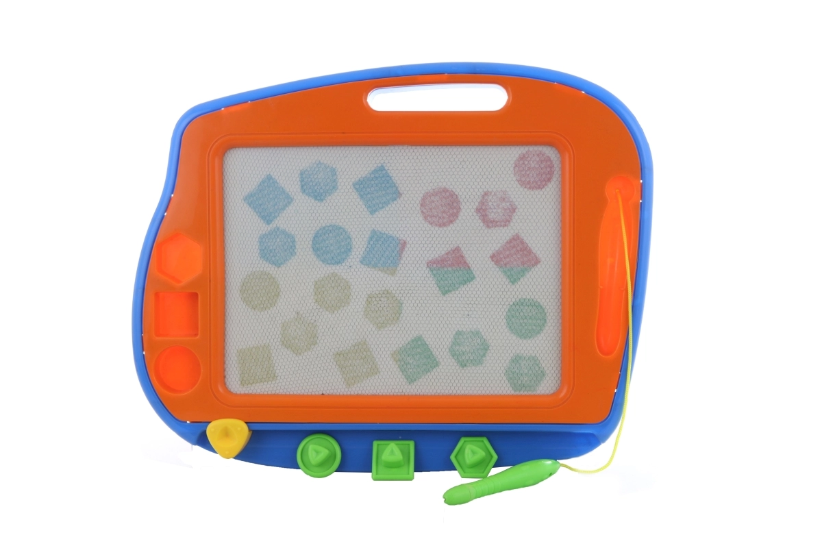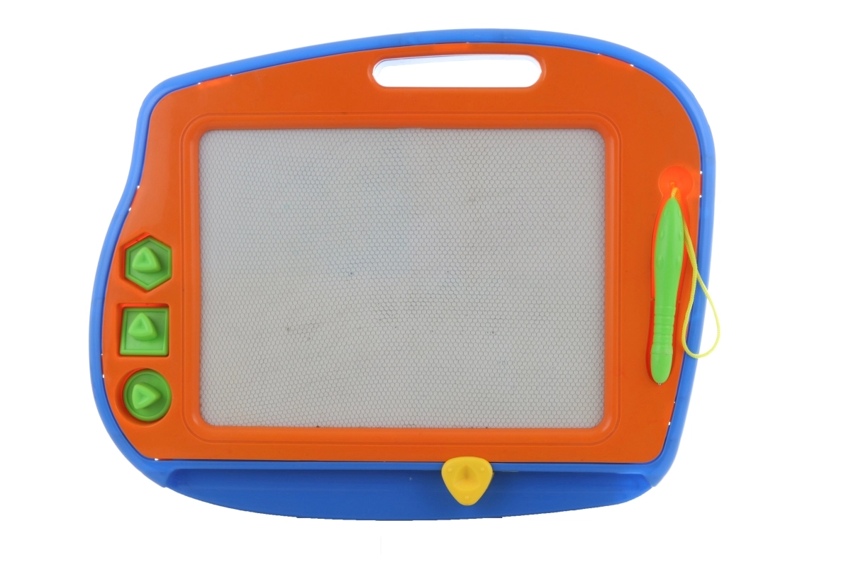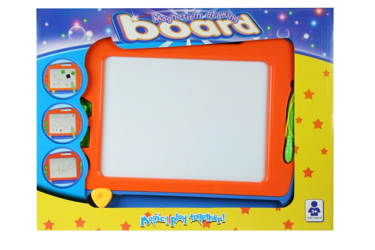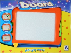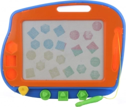 Ta praktična risalna tabla je idealna za prve risbe, pisanje in učenje oblik. Zahvaljujoč barvni površini so slike živahne in zabavne, z enim potegom pa jih zlahka izbrišete. Odlična pripomoček za doma, na poti in v vrtcu.
