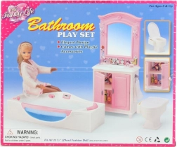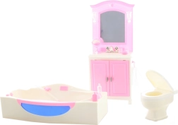 Vsebina paketa vključuje toaletno mizico z umivalnikom, puno in stranišče, pa tudi drobne dodatke, ki ustvarijo vzdušje prave kopalnice. Plastična izvedba zagotavlja enostavno vzdrževanje in dolgo življenjsko dobo pri vsakodnevni igri.