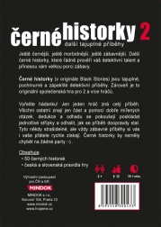 Še temnejše, še napetejše in zagotovo še zabavnejše! Črne zgodbe 2 prinašajo nov nabor ugank, ki poživijo vsako zabavo. En igralec pozna celotno zgodbo, ostali pa s pomočjo pametno zastavljenih vprašanj skušajo ugotoviti, kaj se je v resnici zgodilo.