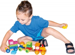 Multifunkcijski leseni vlak je ne le vlečna igrača, ampak tudi sestavljanka, ki otrokom omogoča razvijanje njihove kreativnosti. Del vlaka so trije podvozji in 18 različnih kock, ki jih je mogoče zlagati po domišljiji.