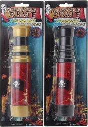 Podajte se na pustolovsko plovbo s piratskim daljnogledom, ki spodbuja otroško domišljijo in igro na pirate. Zaradi kompaktnih mer in enostavnega izvlačenja se daljnogled udobno prilega v žep in je vedno pripravljen za akcijo. Piratska zastava z lobanjo zagotavlja avtentičen videz in navduši male ljubitelje pustolovščin.