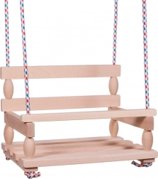 Zahvaljujoč nosilnosti 80 kg je gugalnica primerna za širši starostni razpon. Močne viseče vrvi omogočajo enostavno obešanje na tram, stojalo za gugalnico ali stropne kljuke. Naraven les se lepo poda tako v notranje kot zunanje prostore in ga je preprosto vzdrževati. Praktično pakiranje v vrečki olajša prevoz in shranjevanje.