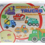 Spremenite ustvarjanje v gradbeno pustolovščino. S tem setom bodo otroci vlili magnetke iz mavca v kalup s 6 motivi gradbenih vozil, jih pobarvali s priloženimi barvami in z magneti iz njih ustvarili vesele okraske za hladilnik ali magnetno tablo.