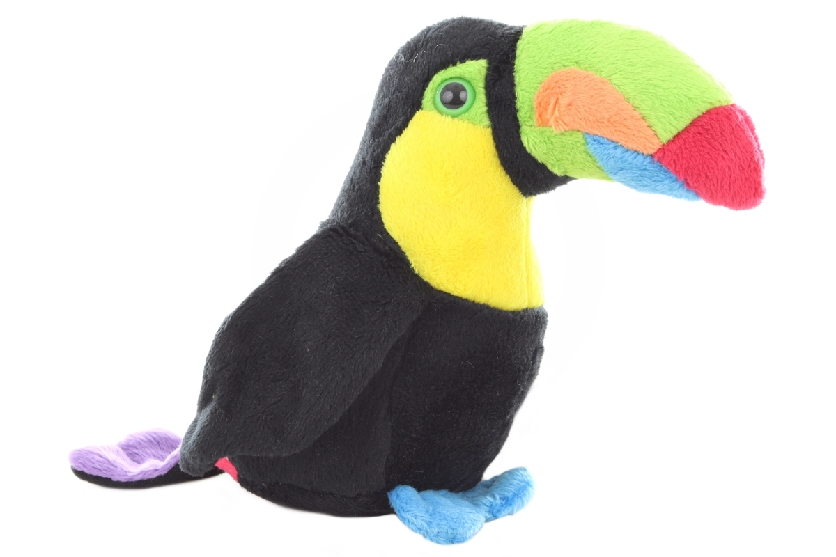 Plišasti tukan z merami približno 15 × 8 × 14 cm je popoln prvi pliško za dojenčke in starejše otroke. Zahvaljujoč mehko polnjenemu telesu lepo sede v rokah in vabi k objemu. Realistična barvna obdelava kljuna in perja ga naredi za prikupen dodatek otroški sobi.