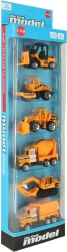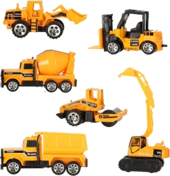 Celovit izbor strojev za male graditelje: mešalec, prekucnik, bager, buldožer, valjar in viličar. Idealno za ustvarjanje lastnega gradbišča in scenarijev.