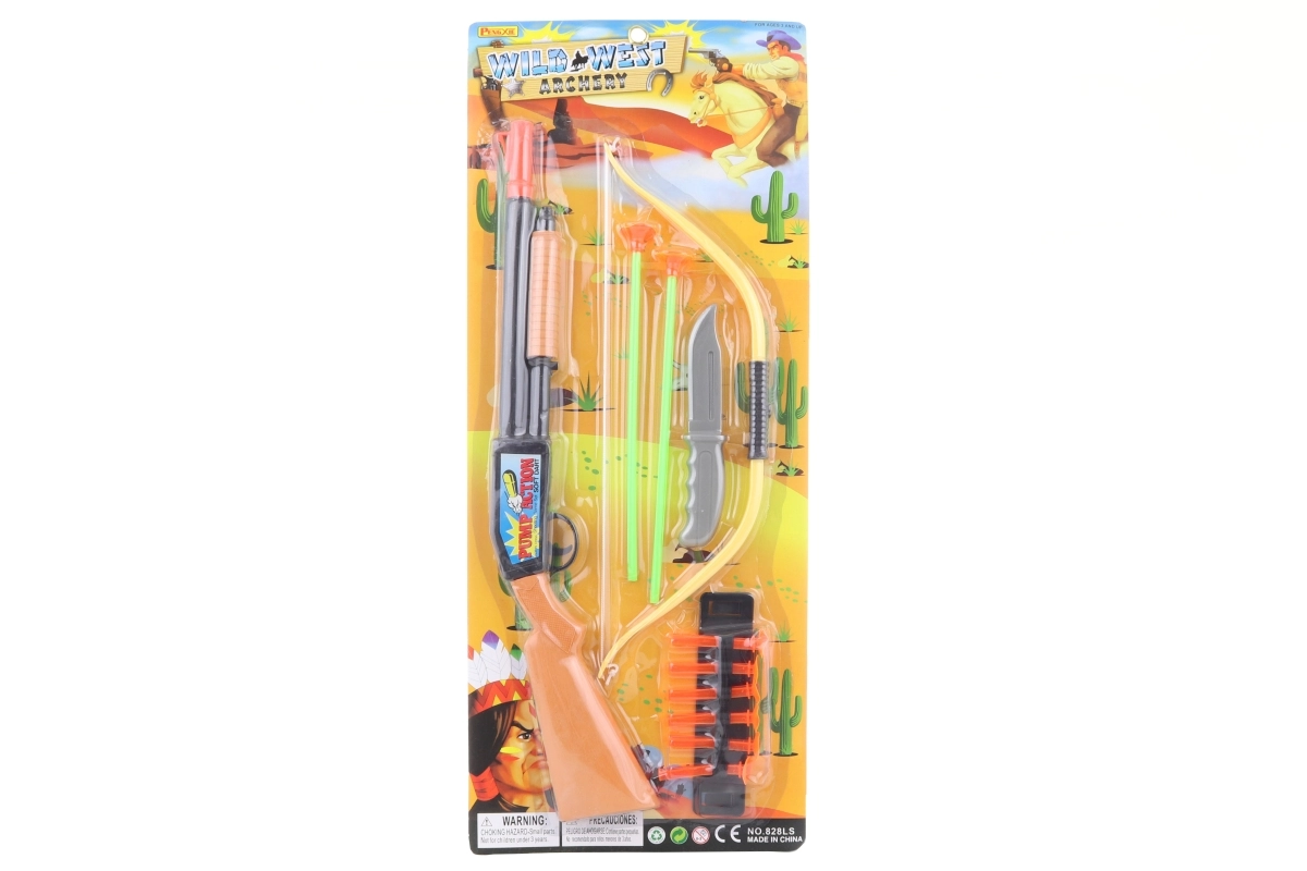 - Puška na priseske, 6 priseskov, plastični lok, 2 puščici, plastični nož