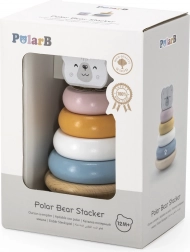 Lesena izobraževalna piramida s motivom polarnega medveda je idealna igračka za najmlajše. Ta piramida je opremljena s šestimi obročki različnih velikosti in barv, vključno z enim glavnim obročkom z medvedjo glavo. Zaradi trajne lesene zasnove je igračka ne le varna, ampak tudi trpežna.