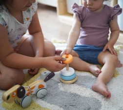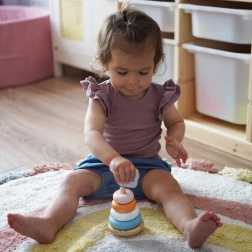 Igranje s piramido pomaga razvijati koordinacijo oko-roka, logično razmišljanje in kreativnost vaših otrok.