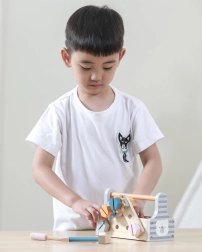 Lesena omarica z orodjem znamke VIGA iz linije Polar Bear prinaša otrokom veselje ustvarjalnosti in učenje praktičnih veščin. Ta set vsebuje vse, kar potrebujejo za ure domišljije in zabave s fino motoriko.