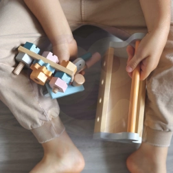 Pomaga otrokom izboljševati fino motoriko ter koordinacijo rok in oči pri igri z vijaki in maticami.