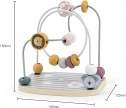 Odkrijte leseni kroglični labirint, ki spodbuja razvoj fine motorike in nudi izobraževalno izkušnjo za malčke. Ta kakovostna igrača je izdelana iz naravnega lesa in uporablja varna barvila, kar zagotavlja varnost in estetski vtis. Z barvnimi kroglicami in živalskimi oblikami, nanizanimi na vijugastih žičnih poteh, otroci krepijo koordinacijo in fino motoriko.