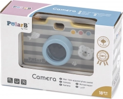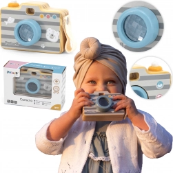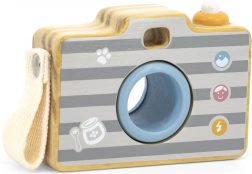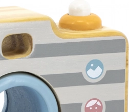 Igrača je izdelana iz kakovostnega lesa in prebarvana z nestrupenimi, za otroke varnimi barvami. Robustna izdelava, gladki robovi in stranski ročaj zagotavljajo udobno in varno uporabo. Fotoaparat odlično razvija fino motoriko, koordinacijo in ustvarjalnost med igro vlog.