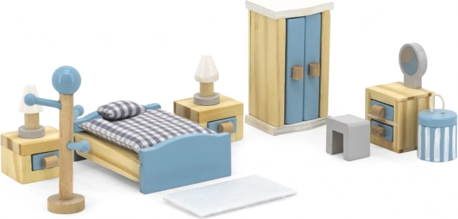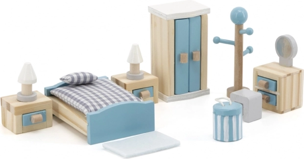 Ta premišljen lesen komplet pohištva za hiško za punčke prinaša popolno opremo spalnice v nežnih, otrokom prijetnih barvah. Vsak del je izdelan z poudarkom na detajlih in vzdržljivosti, da dolgo zabava in razvija otroško domišljijo.