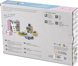 Komplet lahko razširite z drugimi sobami iz serije POLARB (spalnica, dnevna soba, kuhinja, kopalnica) in tako ustvarite celotno hiško po svoji meri. Zahvaljujoč kakovostnim materialom in netoksičnim barvam je igra varna, hkrati pa podpira fino motoriko, komunikacijo in logično razmišljanje.