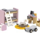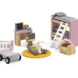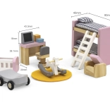 Komplet lesenega pohištva Otroška soba VIGA POLARB spremeni vsako hiško za punčke v realističen in igriv prostor. Natančno izdelane miniature v pastelnih barvah imajo gladke robove, trdno konstrukcijo in skrbne detajle, ki razveselijo otroke in starše. Odličen za ustvarjalne in igralne vloge ter razvoj domišljije.