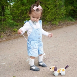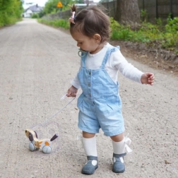 Vlečni kužek motivira otroke k hoji, krepi koordinacijo in jih uči ohranjati ravnotežje. Zaradi udobne vrvice je vlečenje naravno in zabavno.