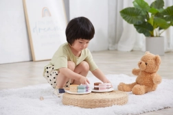 Masiven les z gladko lakirano površino je prijeten na dotik in odporen proti obrabi. Igra s sladicami razvija fino motoriko, koordinacijske spretnosti, komunikacijo in socialno igro. Set je primeren za otroke od 18 mesecev in odlično dopolni otroško kuhinjico ali kot darilo.